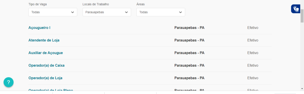 PARA SE CANDIDATAR A ALGUMA VAGA, CLIQUE NO BOTÃO ABAIXO E FILTRE PELA CIDADE DE PARAUAPEBAS, CONFORME A FOTO ABAIXO.