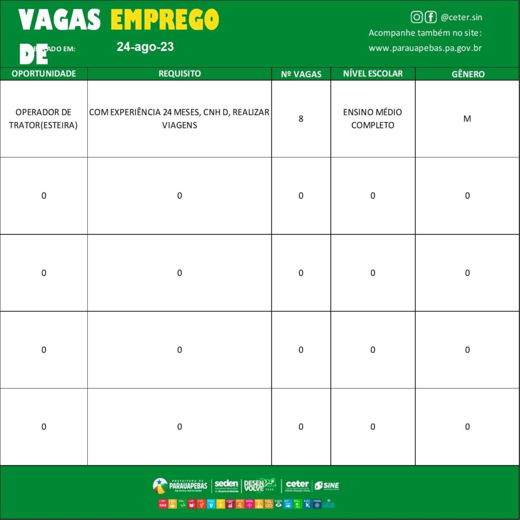 Vagas do Sine Parauapebas desta Quinta 24/08/2023.
